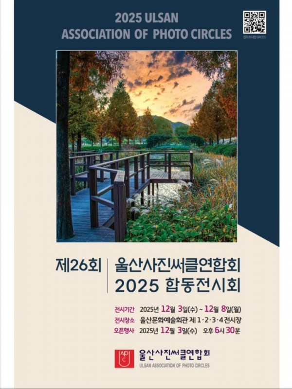제26회 울산사진써클연합회 합동 전시회 작성자 정보 운영자 작성 작성일 2025.12.01 19:08 컨텐츠 정보 242 조회 목록 본문 울산사진써클연합회 합동 전시회기간:12월3일(수)~12월8일(월)장소:울산문화예술회관 제1,2,3,4전시장오픈행사:12월3일(수)18시30분 관련자료 이전 제39회 현대자동차 사진동우회 회원전 작성일 2025.12.04 11:18 다음 문수조류탐사회 제2회 회원전 작성일 2025.11.24 21:53 댓글 0 등록된 댓글이 없습니다. 로그인한 회원만 댓글 등록이 가능합니다. 목록
