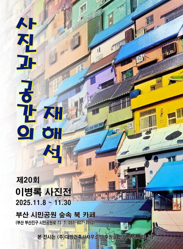 이병록 회원 20번째 개인전 안내 작성자 정보 운영자 작성 작성일 2025.10.29 12:42 컨텐츠 정보 218 조회 목록 본문 저의20번째 개인전을 알려드립니다.문화관광재단의예술과 기업 동반성장 지원사업의 일환으로 전시를 하며부산시민공원 숲속북카페에서11월 8일 오후부터 30일까지 전시 예정입니다.많은 격려 부탁드립니다 관련자료 이전 권일 자문위원 개인전 작성일 2025.11.03 13:40 다음 손영배 자문위원 여섯 번째 개인전 개최(성냥산업의 어제와 오늘) 작성일 2025.10.23 11:34 댓글 0 등록된 댓글이 없습니다. 로그인한 회원만 댓글 등록이 가능합니다. 목록